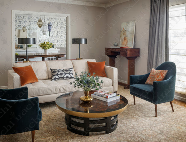 این نمونه ها برای قرار دادن لامپها و برای دادن تعادل به مبل هایی که در یک اتاق شناور هستند وسایلی عالی هستند. به خاطر داشته باشید که لازم است کابل های الکتریکی را با فرش ها بپوشانید.  مشاهده کنید چگونه شیشه درب کابینت با سبک کلاسیک و شیک اتاق هماهنگ شده
