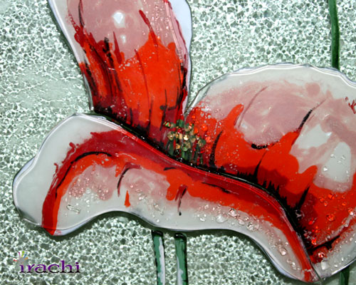 تابلو ۹ لته ای گلهای شقایق یکی از انواع این نمونه هاست . در این تابلو هنرمند با استفاده از فیوز گلهای شیشه ای , که همگی به زیبایی نقاشی شده اند , به ترکیب بسیار جذاب و زیبایی رسیده است . استفاده از خرده های شیشه بر روی گلها حسی از شبنم به آن داده است که گلها را بسیار طبیعی تر جلوه می دهد . در بعضی از قطعات این تابلو دانه های درشت تری از شیشه فیوز شده اند که جذابیت کار را بسیار بالا برده است .