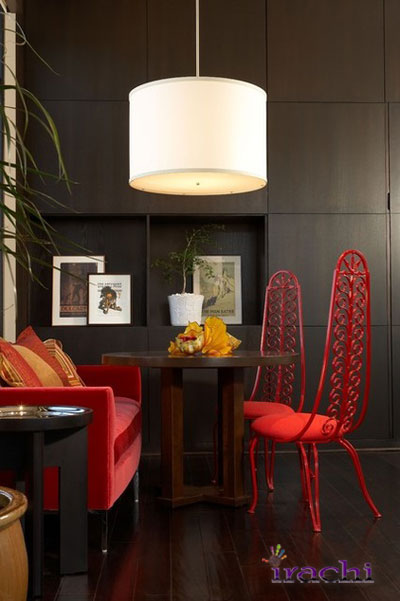 استفاده از صندلی قرمز پشت میز مشکی ماننده استفاده از کفش قرمز با لباس مشکی است. هر دو غیر منتظره هستند و جلب توجه میکنند. | ![]() |