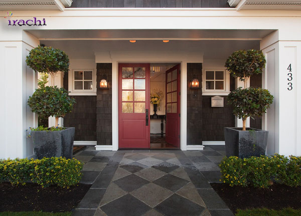 درورودیهای خانههای کلاسیک معمولا از ترکیب دو رنگ قرمز و مشکی استفاده میشود. رنگ قرمز درب ورودی سمبل گرما و خوشآمد گویی است. اگر حجم رنگ مشکلی در ورودی خانه شما پایین است میتوان از گلدانهای و همچنین سنگفرش مشکی استفاده کرد.