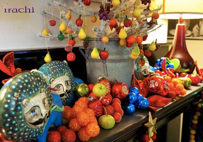 در زیر تصاویری دست ساز از هدیه ها و تزئینات کریسمس ساخته شده برای دکوراسیون داخلی اورده شده است که زیبایی خاصی دارد در این عکس در آشپزخانه از چینی هایی با طرح گربه و میوه های کوچک مصنوعی از درخت کوچک کاج کریسمس اویزان شده اند و تزئین زیبایی را بوجود اورده است