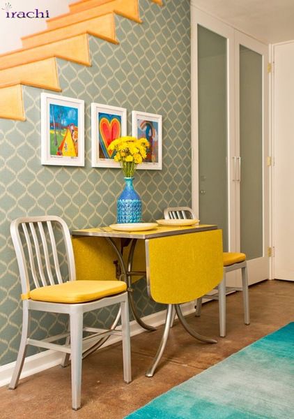 استفاده از رنگ های آبی و زرد بسیار مناسب برای زیر راه پله ها می باشد انرا می توانید با مقداری سرامیک و یک گلدان ابی و میز زرد رنگ مخلوط سازید خلاق باشی!!!