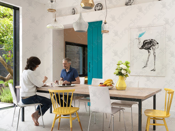 در فیروزه ای در این فضای آشپزخانه ناهارخوری، نشان می دهد که چطور یک در کشویی می تواند یک چیز خاص به فضای داخلی شما اضافه کند. اگر به دنبال چنین چیزی هستید، حواستان باشد رنگ باید به گونه ای باشد که از هر دو طرف مناسب به نظر برسد، یعنی باید دکوراسیون داخلی اتاق آن طرف در را هم کامل کند.