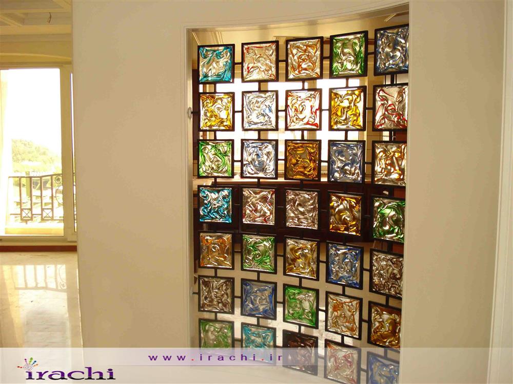 ۷-تغییر در دید و منظر: ماهیت کاشی شیشه ای رنگی و ضخامت آن به گونه ای است که افراد یا فعالیت در فضای پشت آن دیده نمی شود. بنابراین گزینه خوبی برای جداسازی فضاها در منزل یا عملکردهای عمومی همچون مطب پزشکان، آرایشگاه ها، ادارات و غیره می باشد.