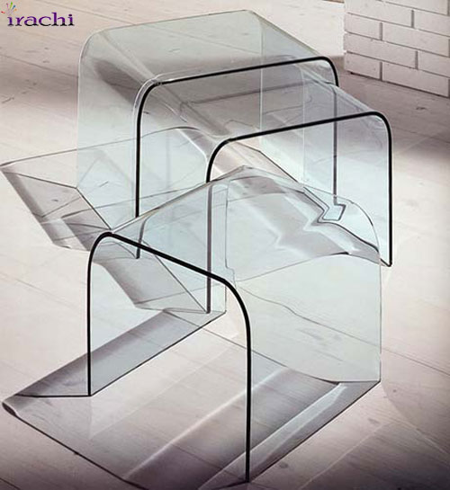 انواع میزها و محصولات دکوراتیو می تواند با تکنیک ساخت شیشه های خم اجرا شود و به زیبایی دکوراسیون داخلی بیافزایند.