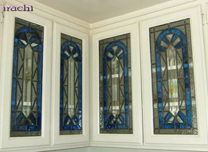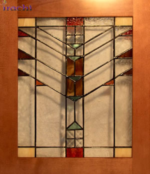 شیشه طرحدار تکنیک استین کلس همراه با شیشه های تراشدار .