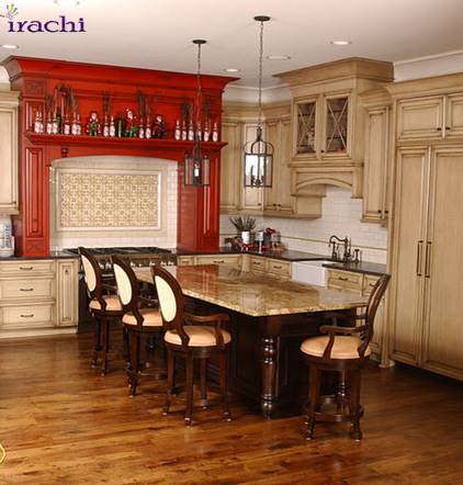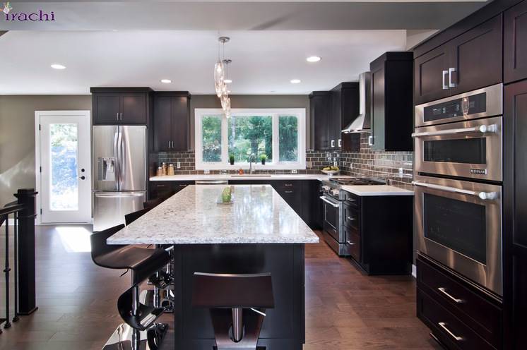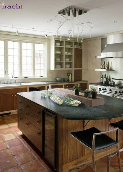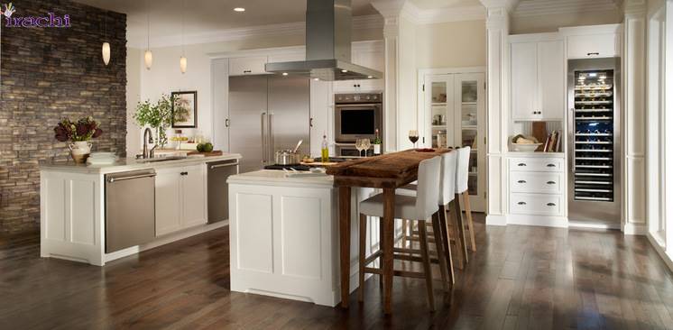 و سرانجام اگر در آشپزخانه کانتر مناسبی برای قرار گرفتن صندلی پشت آن ندارید می تواند مانند تصویر، یک میز مقابل کابینت قرار بدهید و از آن به عنوان میز کانتر استفاده کنید.