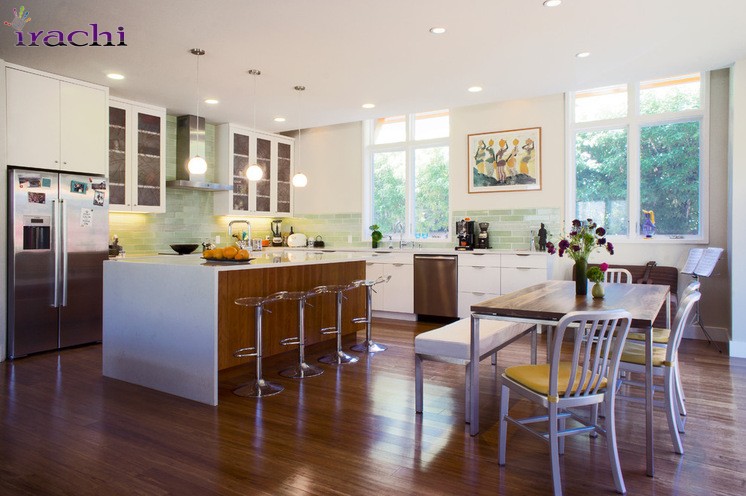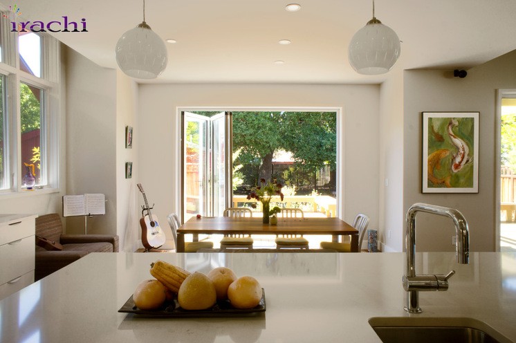 در این منزل نیز نمای بین آشپزخانه و تراس باز شده است و اجازه ورود نور به داخل منزل داده شده که با استفاده از یک تراس و اوپن بودن محیط خانه و همچنین استفاده از پنجره ها در سقف امکان هرچه بیشتر شدن نور در محیط فراهم شده است