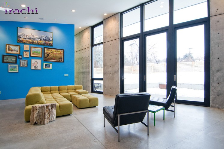 در این منزل نیز از پنجره های بزرگی برای باز شدن دید خانه و نورانی تر شدن ان استفاده شده است و طراح با این کار اقدام به نورانی تر کردن منزل و ایجاد فضای بیشتری از نور در خانه کرده است