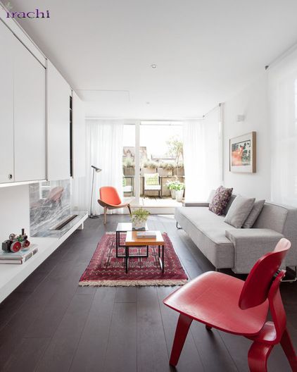 با استفاده از چینش صندلی های می توانید درازی خانه را کوچک نمایید و به قسمت های کوچکتری تقسیم نمایید همچنین می توانید از مبلمان و میز ها برای تقسیم فضا استفاده نمایید.