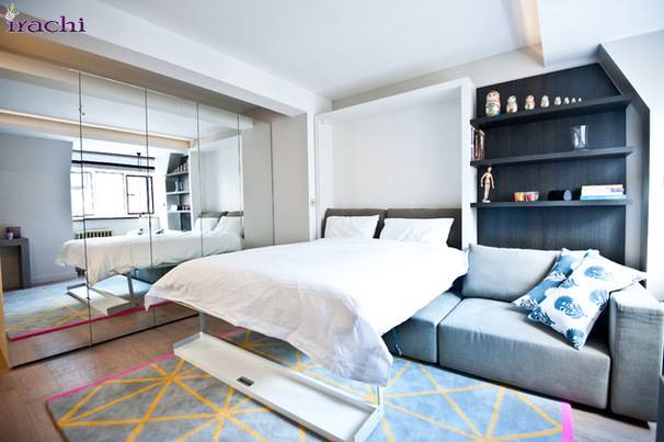 ۹- مدل دیگر از تخت های جمع شونده این گونه از تخت ها هستند که برعکس باز شدن از روی مبل بروی دیوار بسته شده و باعث می شوند از فضای بالایی مبلمان های خود استفاده بهینه بنمایید