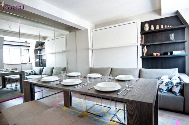 می توانید از طراحی این نوع میزها در دیوارهای اتاق استفاده نمایید .این میزها امکان جمع شدن و باز شدن میز را فراهم آورده است البته این میزها بیشتر از دو نفر ظرفیت نخواهد داشت اما بسیار در فضاسازی محیط بشما کمک خواهد کرد.
