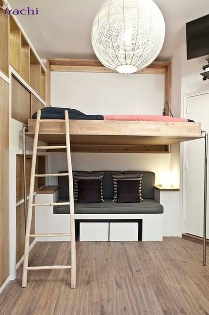 نوعی دیگر از تخت خواب ها تخت خواب های کشویی می باشند در این تصویر همانطور که مشاهده می نمایید یک تخت کابلا بزیر راه پله کاذبی که در طبقه ایجاد شده است می رود با جمع شدن این تخت مبلمان کوچکی در کنار اتاق خواب خود خواهید داشت