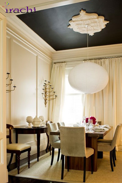 | نیازی نیست که رنگ مشکی در نقاط مختلف یک اتاق چندین بار مورد استفاده قرار بگیرد. یکبار استفاده از این رنگ مانند تصویری که در آن از رنگ سیاه روی سقف استفاده شده کافی است و فضای اتاق را متحول میکند. | ![]() |