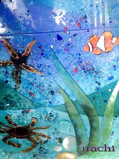 تک کاشی فیوز گلس با طرح آکواریوم و امکان اجرا به صورت تابلویی یکپارچه